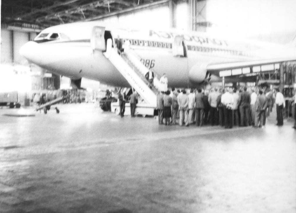 Prezentace IL-96 pro pracovníky leteckých společností socialistických zemí v Žukovském. Snímek, který pořídil pracovník ČSA pan Ing. Stanislav Houba, je i přes svoji poměrně špatnou kvalitu zařazen proto, že ze dveří letadla vychází autor článku.